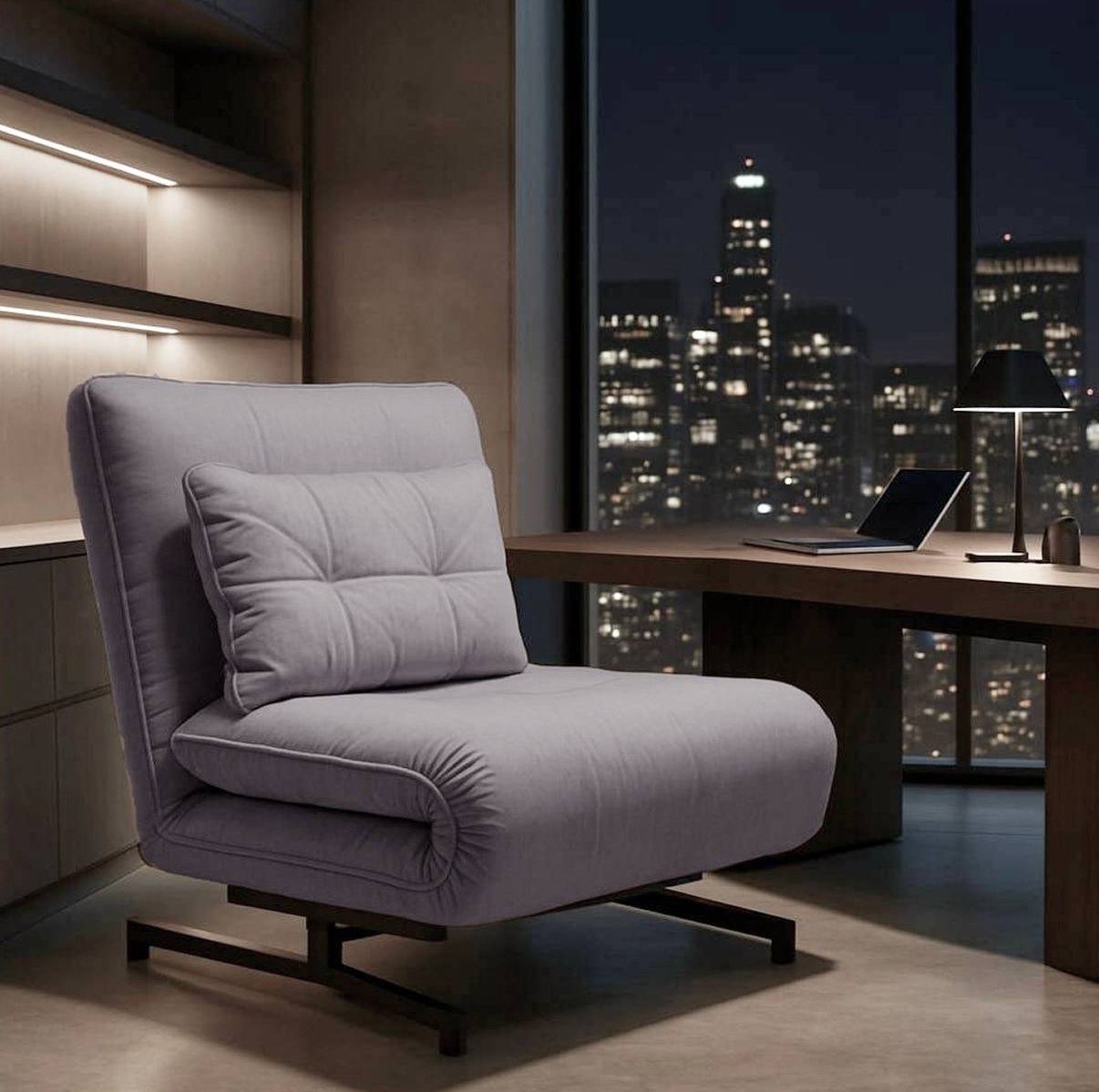 Rozkładany fotel Nordik – wyjątkowy mebel ze względu na wielofunkcyjność i design. W razie potrzeby fotel Nordik może pełnić funkcję leżaka wypoczynkowego albo kompaktowego łóżka, na którym swobodnie wyśpi się jedna osoba dorosła albo dziecko zapewniając komfortowy sen i oszczędność miejsca. Często przyjmujesz gości? Twoje dziecko ma przyjaciela który lubi zostać na noc? Jesteś studentem, mieszkasz w akademiku i nie masz zbyt dużo miejsca na dodatkowe łóżko? Rozkładany fotel Nordik staje się idealnym rozwiązaniem w różnych sytuacjach. Stabilność i jednocześnie lekkość fotelowi nadaje wytryzmała kratowa rama wewnątrz mebli. Mianowicie takiego typu konstrukcja zapewnia komfort podczas codziennego użytkowania. Dzięki temu proces przekształcenia fotela w łóżko staje się niezwykle prosty nawet dla dziecka. W razie potrzeby oparcie można ustalić w dowolną z 5 pozycji odchylenia. W taki sposób krzesło szybko i łatwe się przekształca w wygodny leżak wypoczynkowy.