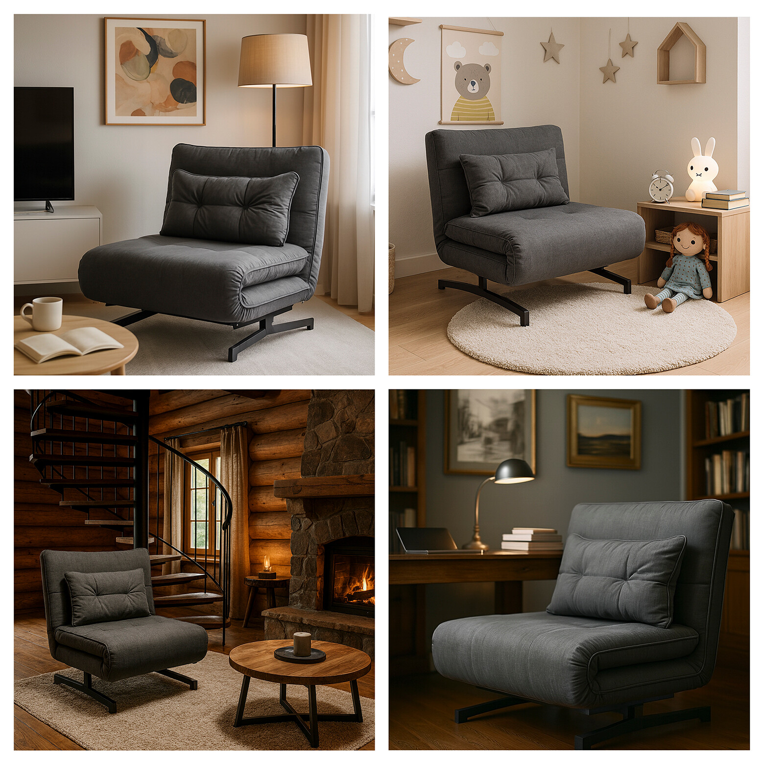 Rozkładany fotel Nordik – wyjątkowy mebel ze względu na wielofunkcyjność i design. W razie potrzeby fotel Nordik może pełnić funkcję leżaka wypoczynkowego albo kompaktowego łóżka, na którym swobodnie wyśpi się jedna osoba dorosła albo dziecko zapewniając komfortowy sen i oszczędność miejsca. Często przyjmujesz gości? Twoje dziecko ma przyjaciela który lubi zostać na noc? Jesteś studentem, mieszkasz w akademiku i nie masz zbyt dużo miejsca na dodatkowe łóżko? Rozkładany fotel Nordik staje się idealnym rozwiązaniem w różnych sytuacjach. Stabilność i jednocześnie lekkość fotelowi nadaje wytryzmała kratowa rama wewnątrz mebli. Mianowicie takiego typu konstrukcja zapewnia komfort podczas codziennego użytkowania. Dzięki temu proces przekształcenia fotela w łóżko staje się niezwykle prosty nawet dla dziecka. W razie potrzeby oparcie można ustalić w dowolną z 5 pozycji odchylenia. W taki sposób krzesło szybko i łatwe się przekształca w wygodny leżak wypoczynkowy.