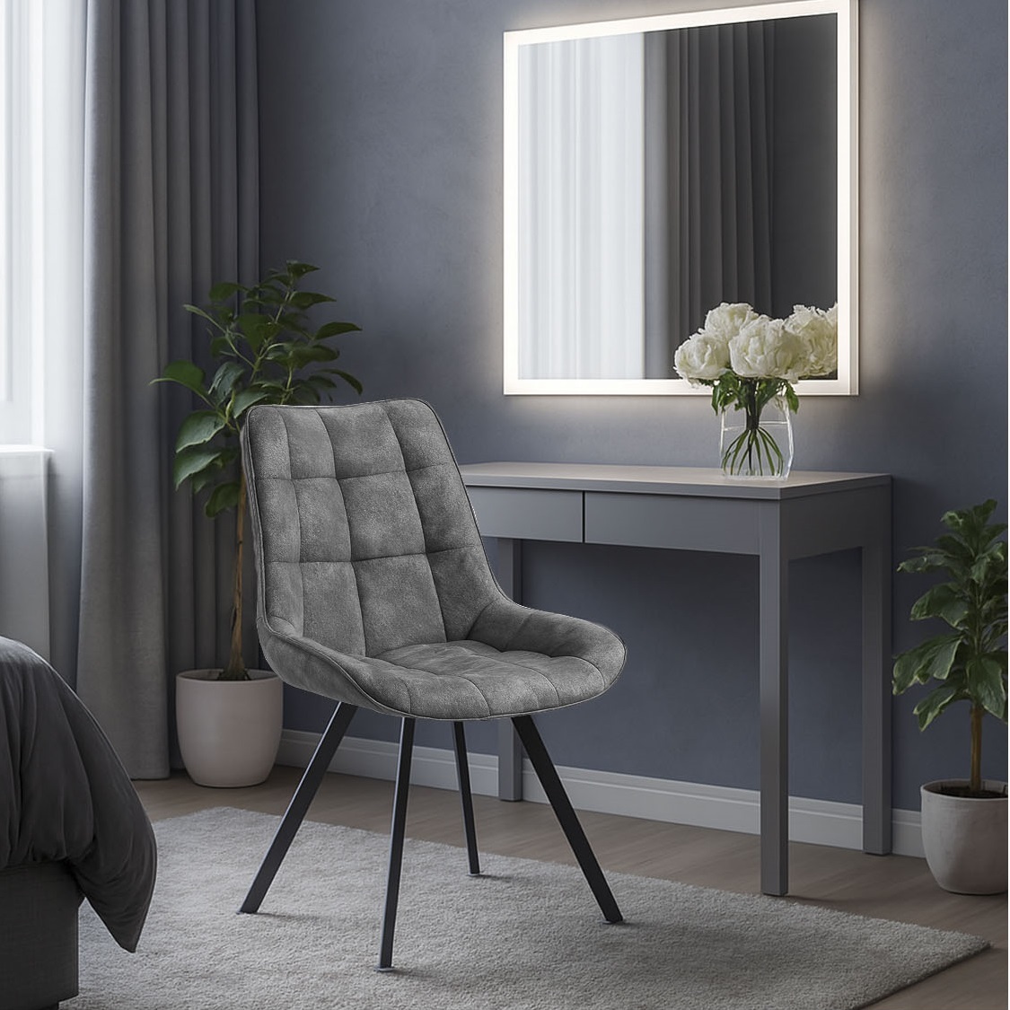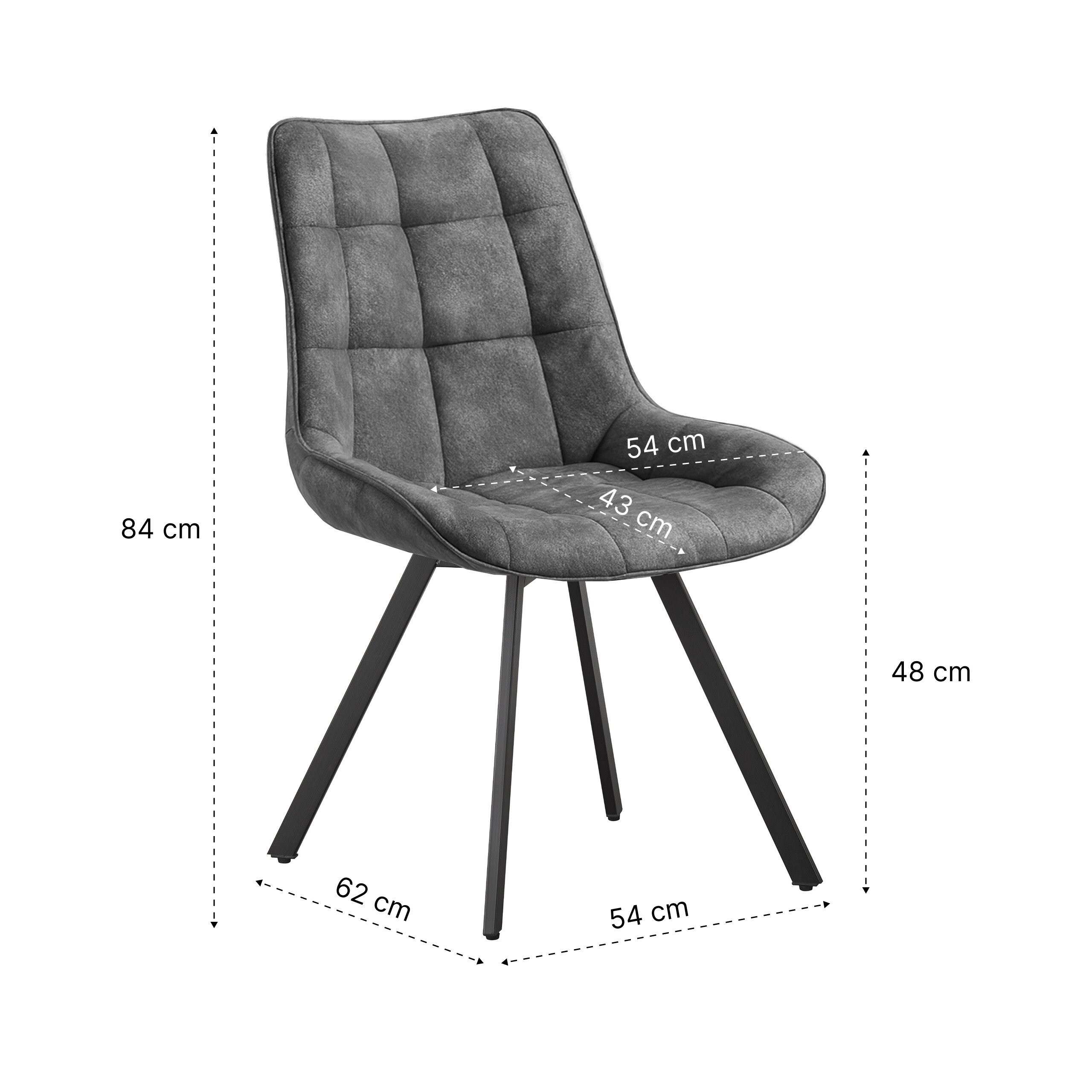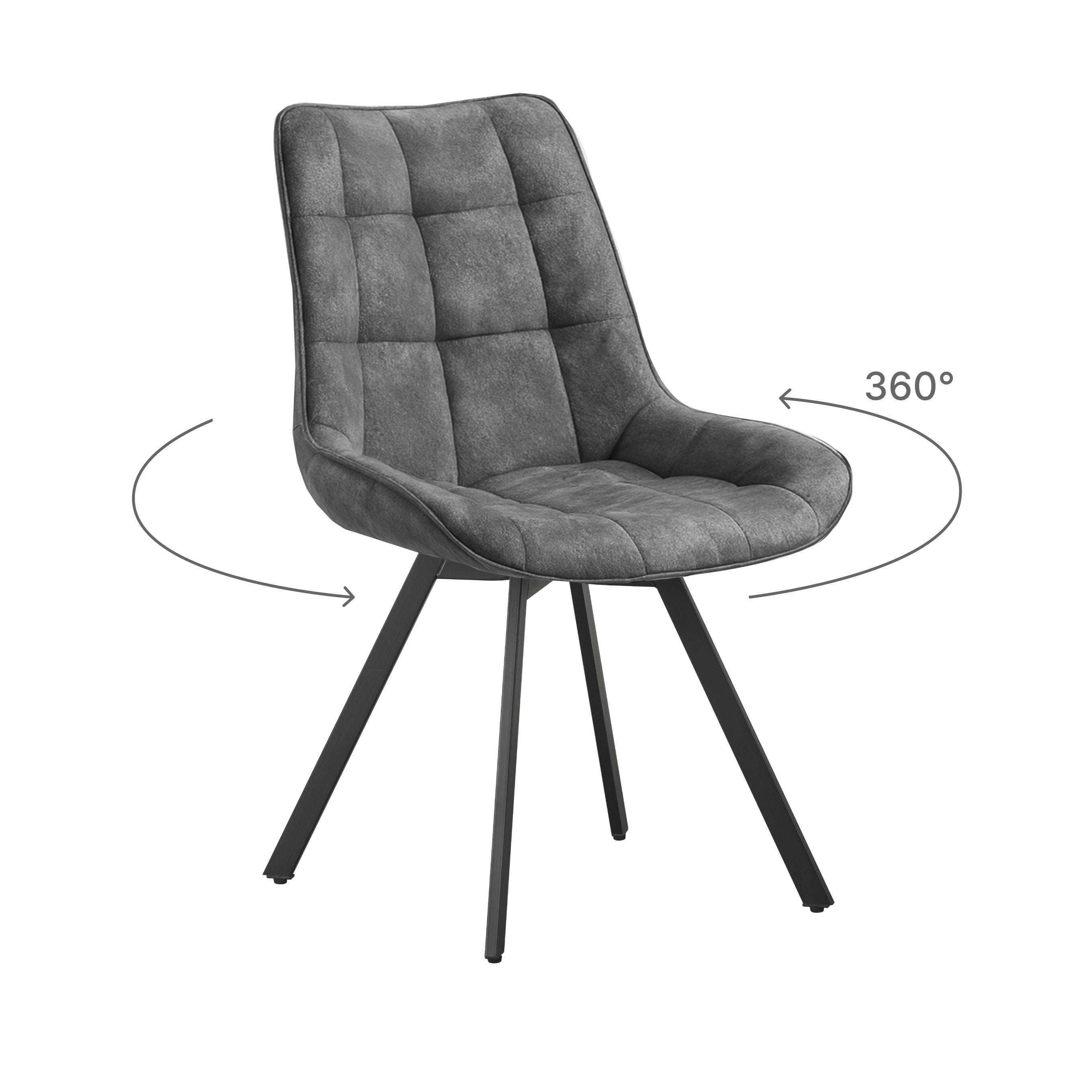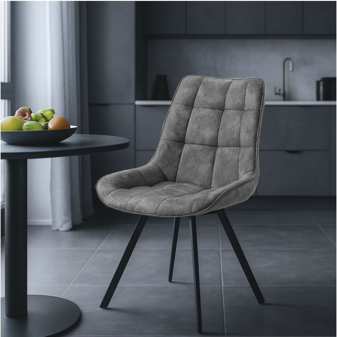 Krzesło "Lester" łączy w sobie nowoczesny design z praktyczną funkcjonalnością. Dzięki mechanizmowi obrotowemu oraz wytrzymałej konstrukcji, idealnie sprawdzi się w kuchni, jadalni lub biurze. Elegancka tapicerka z imitacji nubuku dostępna jest w dwóch uniwersalnych odcieniach.