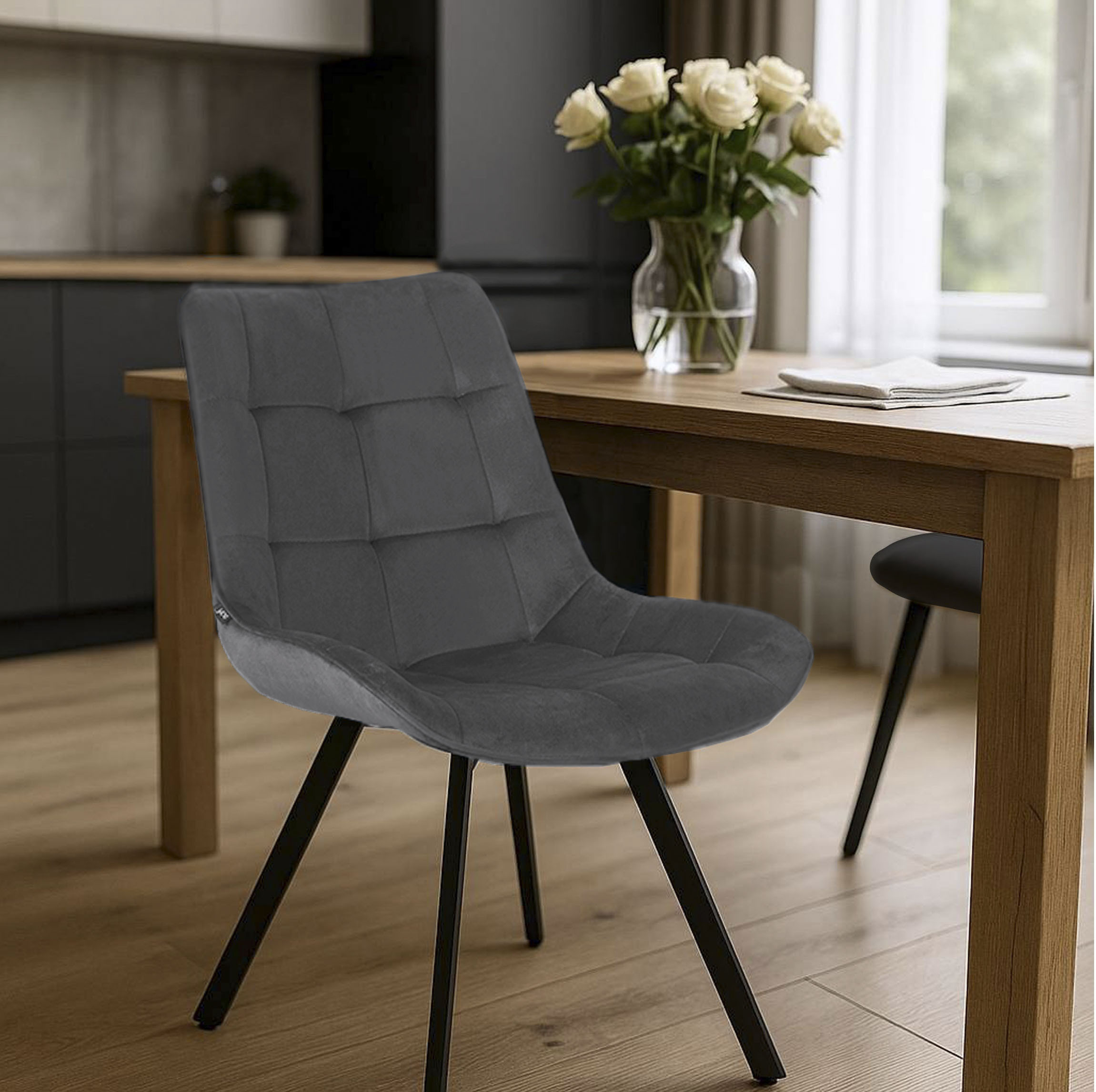 Obrotowe krzesło do jadalni Lester ma uniwersalny design i na pewno świetnie dopasuje się do Twojich wnętrz. Ergonomiczne siedzisko dostosowane jest do kształtu anatomicznego użytkownika. Komfort który na pewno będą doceniali wszystki członkowie Twojej rodziny. Siedzisko i oparcie obite są przyjemną w dotyku miękką tkaniną meblową o wysokim stopniu odporności na ścieranie, łatwa w czyszczeniu i nie traci swojego wyglądu podczas użytkowania. Dodatkową dekoracyjność dodaje pikowany wzór.