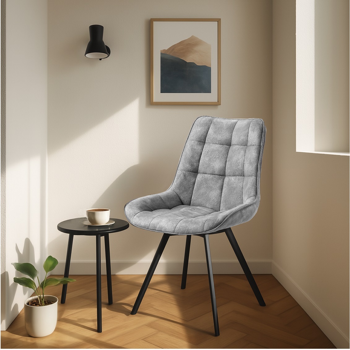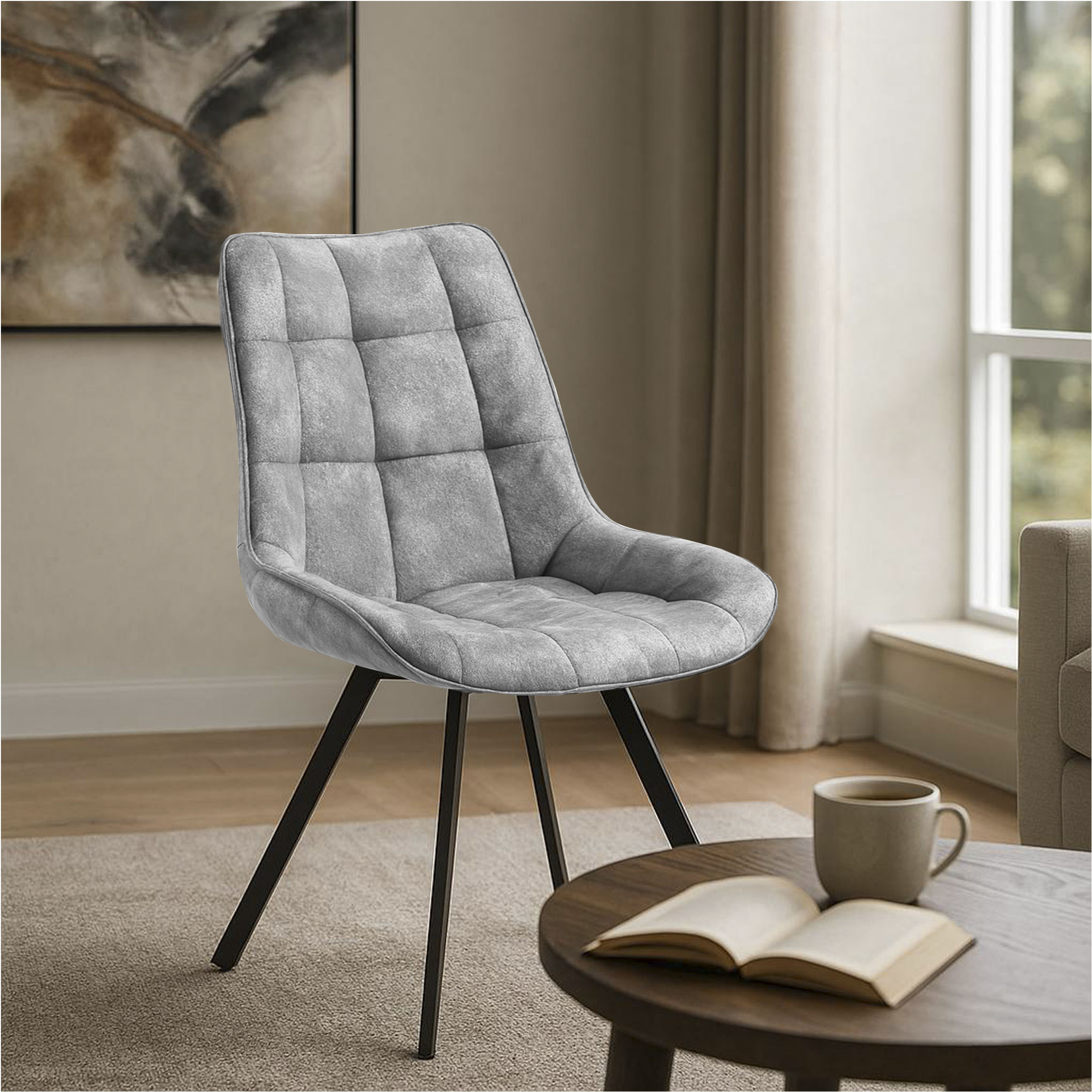 Krzesło "Lester" łączy w sobie nowoczesny design z praktyczną funkcjonalnością. Dzięki mechanizmowi obrotowemu oraz wytrzymałej konstrukcji, idealnie sprawdzi się w kuchni, jadalni lub biurze. Elegancka tapicerka z imitacji nubuku dostępna jest w dwóch uniwersalnych odcieniach.