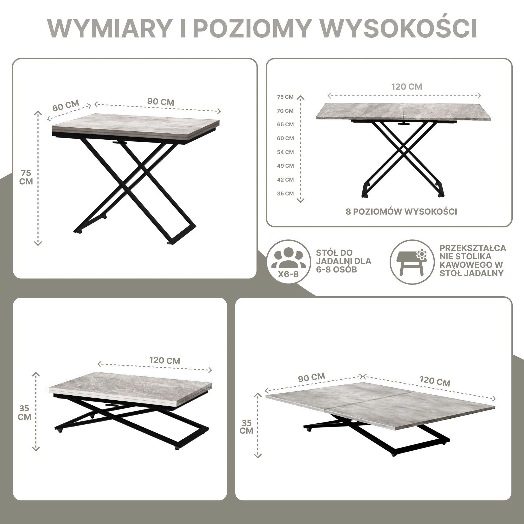 Modyfikowany model Corto-m różni się od poprzedniej wersji ławostołu Corto ilością poziomów wysokości. Dzięki nowemu sprężynowemu automatycznemu mechanizmu podnośnika można ustalić rozkładaną ławę Corto-m na 8 poziomy wysokości w zakresie od 40 do 75 cm. Taka ława 2w1 świetnie dopełni domową strefę wypoczynkową i doskonale sprawdzi się podczas codziennych czynności. A może brakuje Ci własnego gabinetu w Twoim mieszkaniu? Rozkładany i podnoszony ławostół Corto-m może też spełnić funkcję wygodnego biurka. Blat ławostołu wykonany z laminowanej płyty, podstawa – stal malowana.