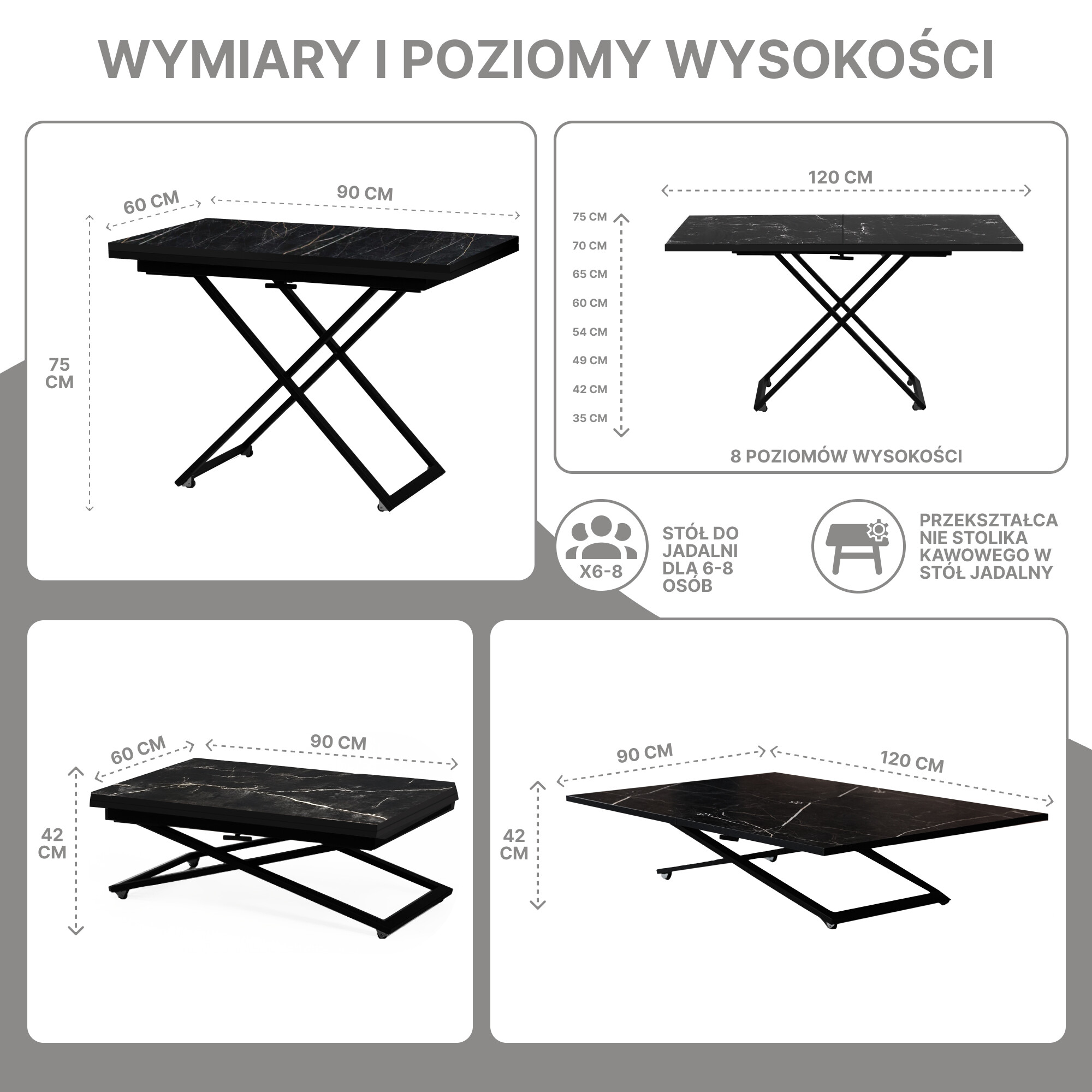 Modyfikowany model Corto-m różni się od poprzedniej wersji ławostołu Corto ilością poziomów wysokości. Dzięki nowemu sprężynowemu automatycznemu mechanizmu podnośnika można ustalić rozkładaną ławę Corto-m na 8 poziomy wysokości w zakresie od 35 do 75 cm. Taka ława 2w1 świetnie dopełni domową strefę wypoczynkową i doskonale sprawdzi się podczas codziennych czynności. A może brakuje Ci własnego gabinetu w Twoim mieszkaniu? Rozkładany i podnoszony ławostół Corto-m może też spełnić funkcję wygodnego biurka. Blat ławostołu wykonany z laminowanej płyty, podstawa – stal malowana.