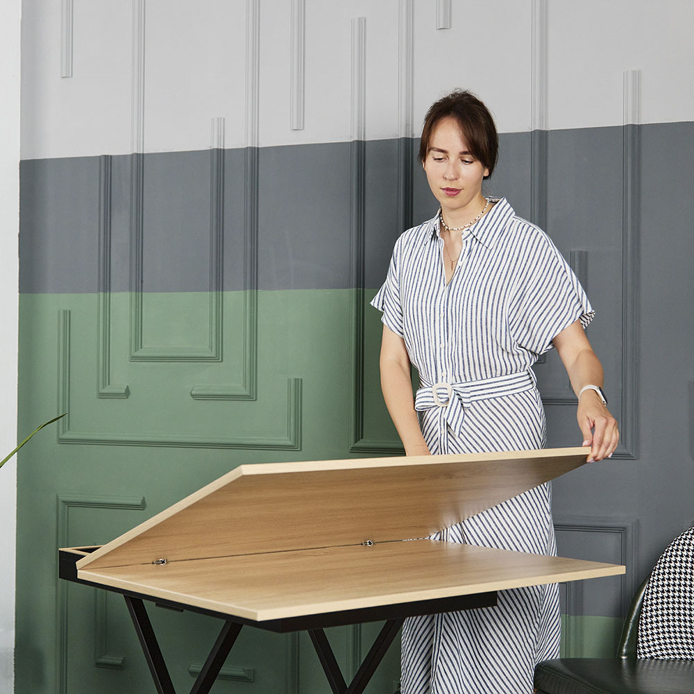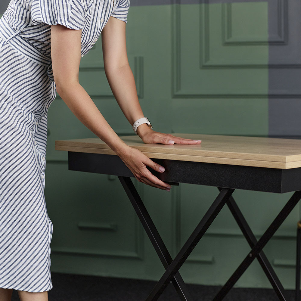 Modyfikowany model Corto-m różni się od poprzedniej wersji ławostołu Corto ilością poziomów wysokości. Dzięki nowemu sprężynowemu automatycznemu mechanizmu podnośnika można ustalić rozkładaną ławę Corto-m na 8 poziomyach wysokości w zakresie od 35 do 75 cm. Taka ława 2w1 świetnie dopełni domową strefę wypoczynkową i doskonale sprawdzi się podczas codziennych czynności. A może brakuje Ci własnego gabinetu w Twoim mieszkaniu? Rozkładany i podnoszony ławostół Corto-m może też spełnić funkcję wygodnego biurka. Blat ławostołu wykonany z laminowanej płyty, podstawa – stal malowana.