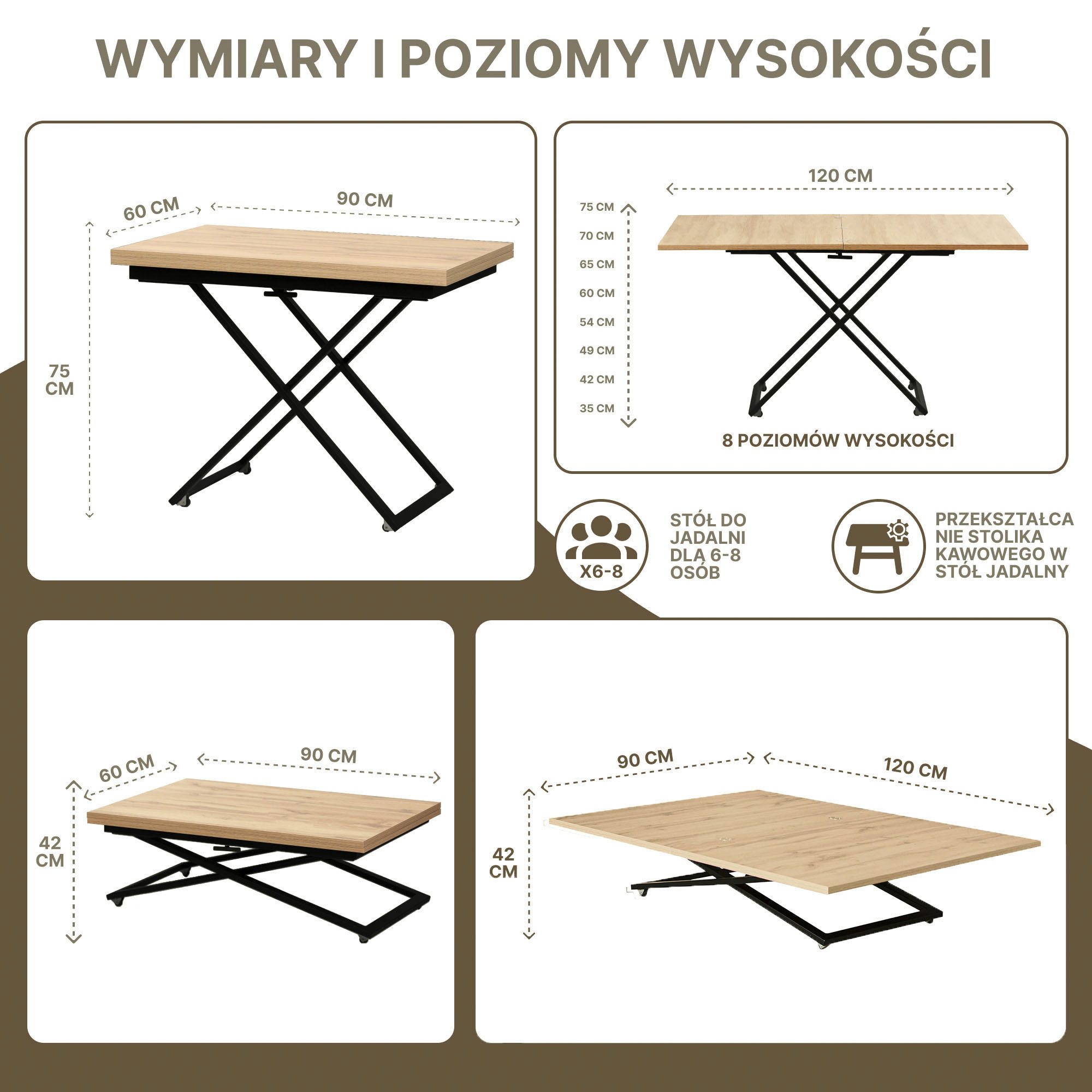 Modyfikowany model Corto-m różni się od poprzedniej wersji ławostołu Corto ilością poziomów wysokości. Dzięki nowemu sprężynowemu automatycznemu mechanizmu podnośnika można ustalić rozkładaną ławę Corto-m na 8 poziomach wysokości w zakresie od 35 do 75 cm. Taka ława 2w1 świetnie dopełni domową strefę wypoczynkową i doskonale sprawdzi się podczas codziennych czynności. A może brakuje Ci własnego gabinetu w Twoim mieszkaniu? Rozkładany i podnoszony ławostół Corto-m może też spełnić funkcję wygodnego biurka.