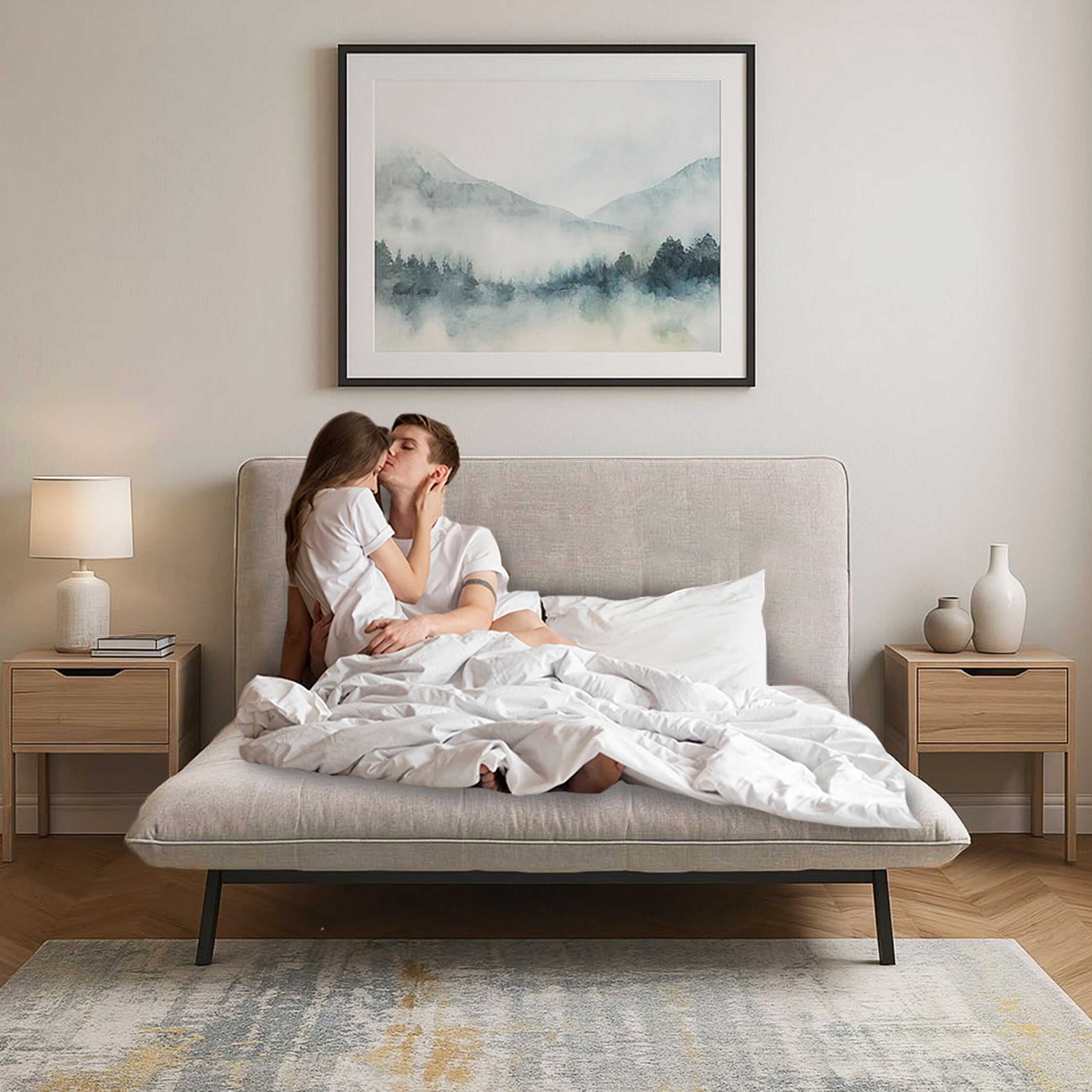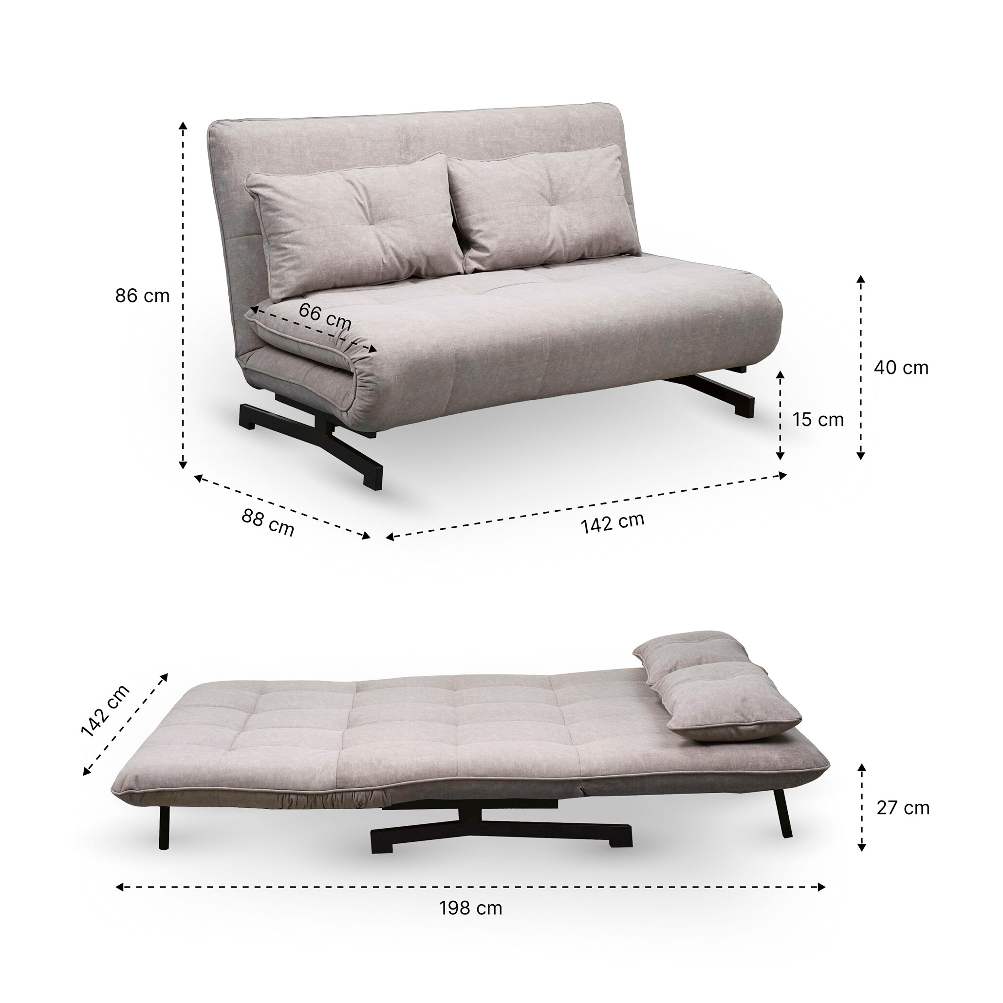 Rozkładana sofa Nordic-142 – wyjątkowy mebel ze względu na wielofunkcyjność i design. W razie potrzeby sofa Nordic może pełnić funkcję leżaka wypoczynkowego albo kompaktowego łóżka, na którym swobodnie wyśpi się nawet dwie osoby dorosłe albo dzieci zapewniając komfortowy sen i oszczędność miejsca. Często przyjmujesz gości? Twoje dziecko ma przyjaciół którzy lubią zostać na noc? Jesteś studentem, mieszkasz w akademiku i nie masz zbyt dużo miejsca na dodatkowe łóżko? Rozkładana dwuosobowa sofa Nordic-142 staje się idealnym rozwiązaniem w różnych sytuacjach.